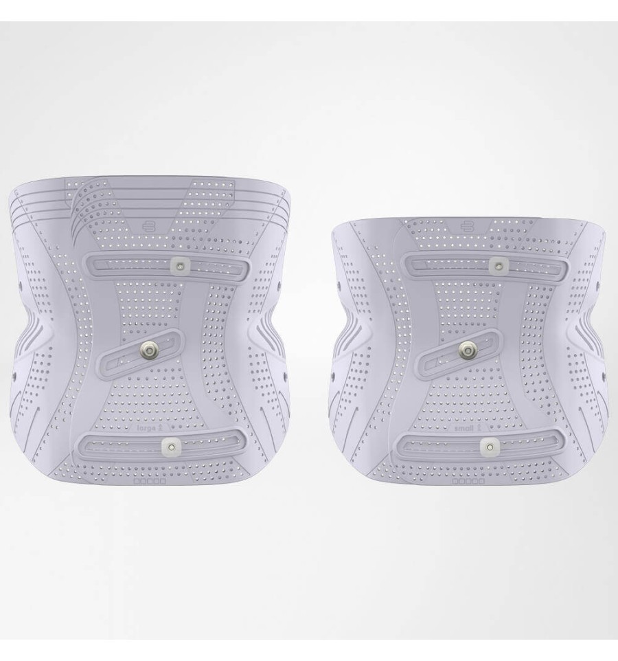 Una cubierta de plástico que envuelve el tronco refuerza la estabilización. Se compone de dos mitades móviles entre sí. Así puede adaptarse exactamente a la forma de su cuerpo. Para mayor comodidad mientras se usa, cuenta con múltiples perforaciones para una termorregulación óptima.