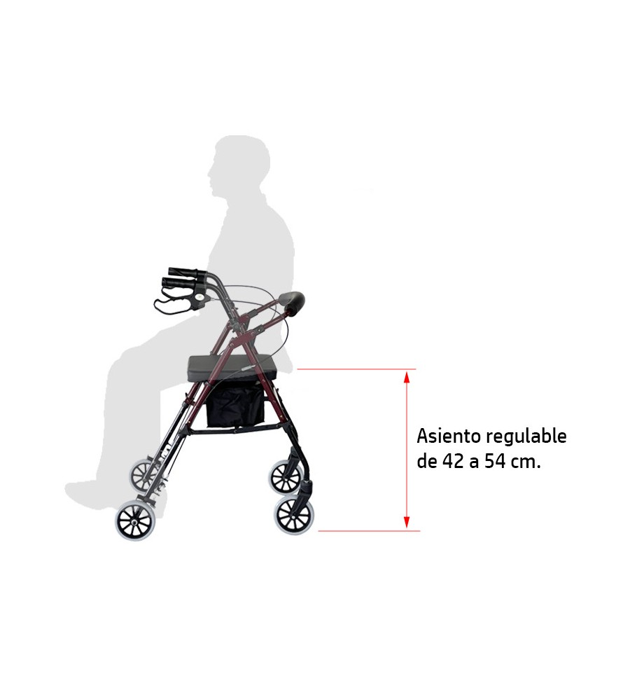 El asiento es regulable en altura de 42 a 54 cm. independientemente de la regulación de las empuñaduras.