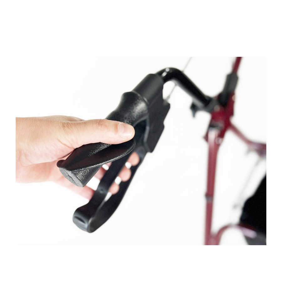 Frenos por maneta. Con sistema de bloqueo para estar sentado. Los puños son anatómicos.
