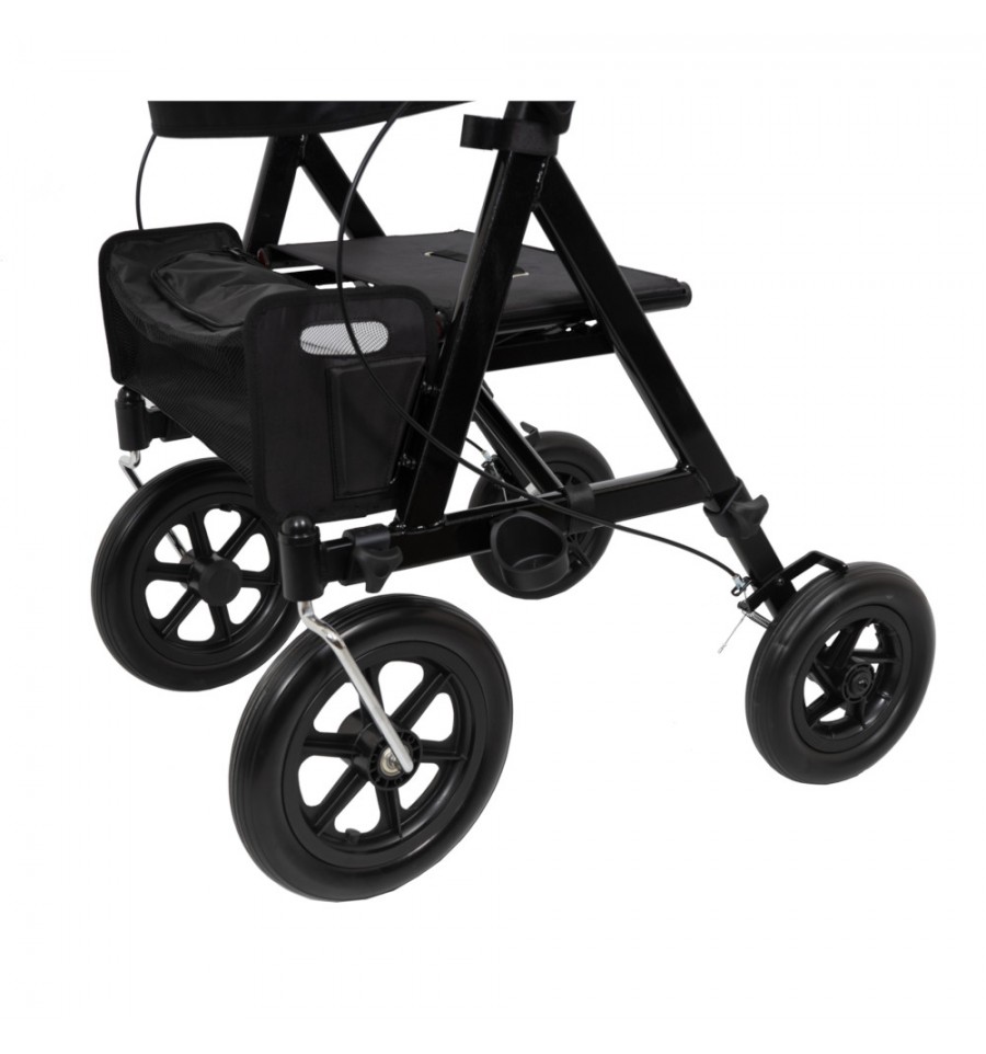 Este rollator todoterreno de rueda grande, frenos por maneta y bloqueo disminuye el esfuerzo al caminar. Es ideal para exteriores. Gracias a sus ruedas grandes se adapta a todo tipo de terrenos y suelos.