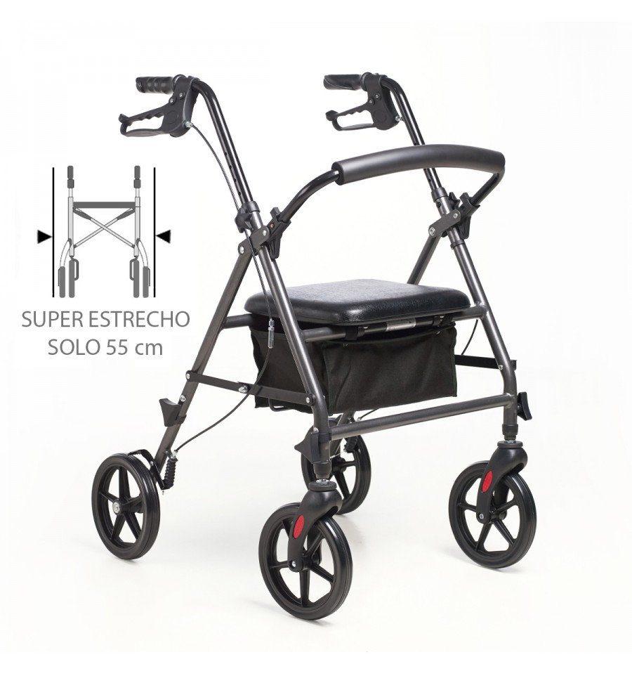El rollator FORTE destaca por su ligereza y diseño compacto (55 cm de ancho), ofreciendo gran maniobrabilidad y alta resistencia para un uso intensivo.