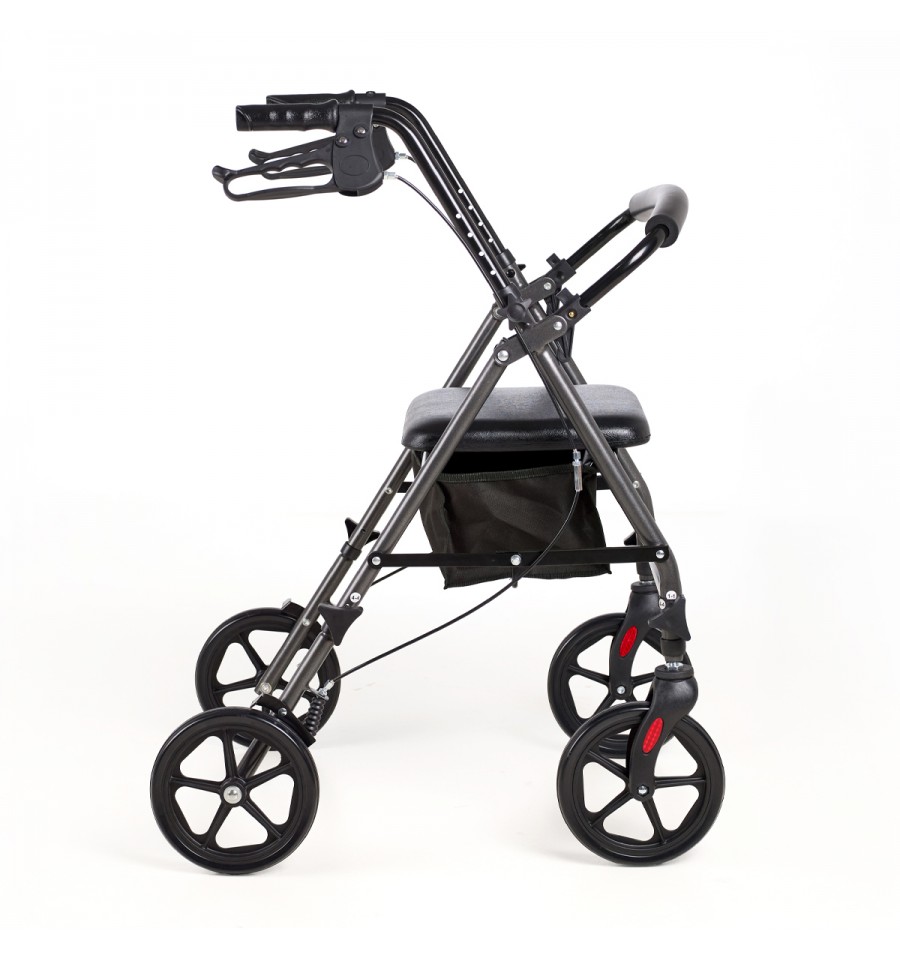 Incorpora ruedas de 200 mm que mejoran la tracción y el confort en la marcha. Cuenta con un asiento acolchado de 30 × 31 cm y una bolsa discreta bajo el asiento para objetos personales.